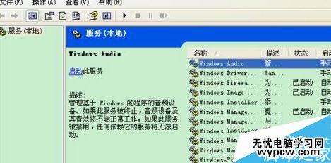 3.在服務(wù)本地右側(cè)找到windows Audio這個(gè)欄目;