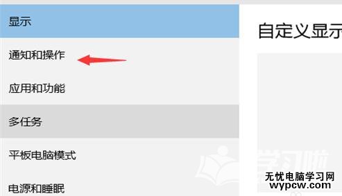 在打開系統(tǒng)功能之后,默認(rèn)顯示的是“顯示”,那么我們需要點(diǎn)擊“通知和操作”這個(gè)功能。
