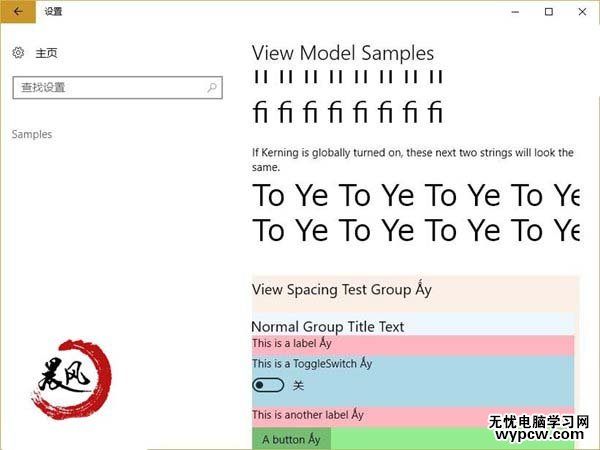 需要說明的是,Samples顧名思義,只是Win10設置項UI的樣板,盡管里面各種設置控件幾乎都已經出現,就算你在里面調節的面目全非,也絲毫不會影響當前系統設置,而且你會感覺里面的調節項目有些莫名其妙,比如你可能沒安裝什么foobar,但卻出現了……所以這個設置項應該是給相關開發人員作參考的。