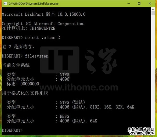查詢當(dāng)前選中的卷的文件系統(tǒng)