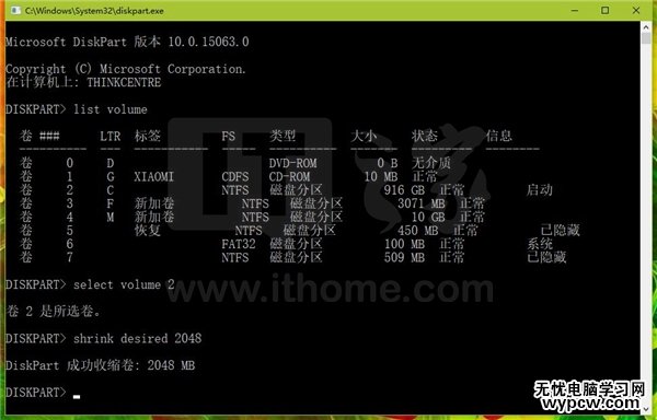 從當(dāng)前選中的卷中壓縮出2048M的空間