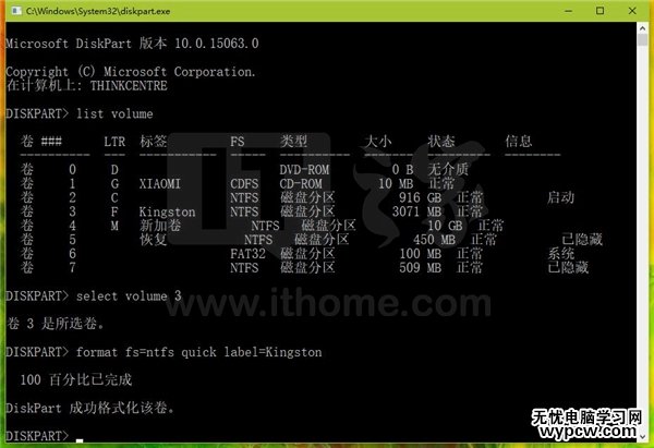 快速格式化當(dāng)前選中的卷為NTFS格式,并將該卷命名為Kingston