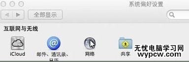 在“系統偏好設置”中找到“互聯網與無線”,打開“網絡”進行網絡設置,如圖所示