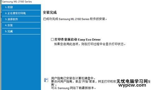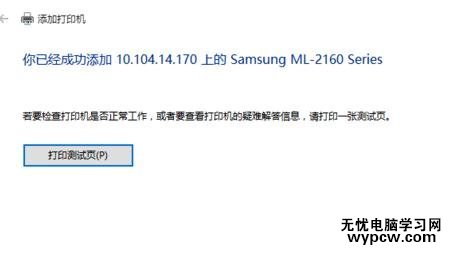 安裝完成后,在執行一次上面的步驟。我們我們看到,這次的就成功的添加上打印機了。在完成的時候,會有一個打印測試頁的按鈕,我們不要去點它,直接點擊“完成”即可。