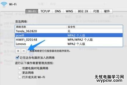 3、在首選網絡列表中找到當前連接不上的無線網絡,點擊下方的“減號”按鈕,如圖所示