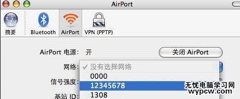 選擇“AirPort”,進(jìn)入WiFi設(shè)置頁面。點(diǎn)擊“打開AirPort”開啟無線開關(guān),搜索無線信號,如下圖所示。