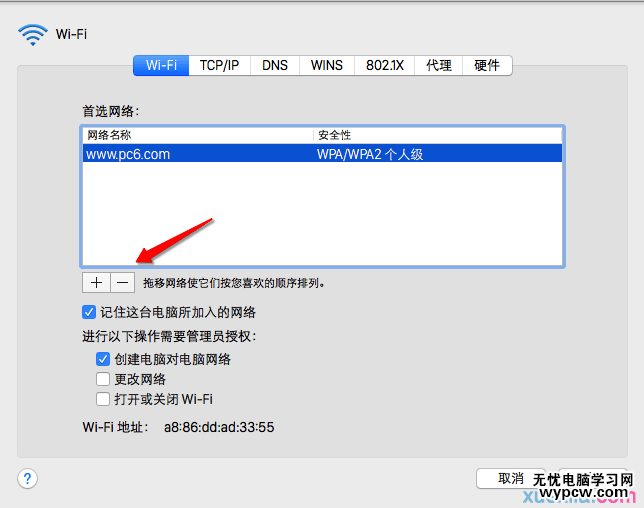 2)點按“—”號按鈕,即可刪除Mac已經記住的網絡。