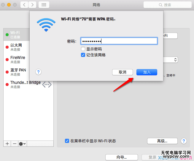 1)勾選 顯示密碼 與記住該網絡。