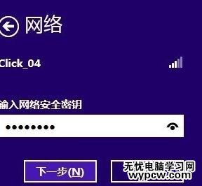在白色方框中輸入該私有無線網絡的安全密鑰,如果擔心輸入錯誤,可以單擊右側的眼睛圖標查看輸入的內容,確認無誤后單擊“下一步”。