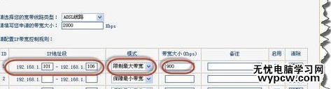 在右側填寫要限制網(wǎng)速的電腦的IP,模式選擇“限制最大帶寬”,限制網(wǎng)速帶寬的話,如果體現(xiàn)合理平分的話,可以將申請的帶寬除以總電腦數(shù)。如申請4M的帶寬的話,4臺電腦的話4000/4,一臺電腦限制最大帶寬為1000.