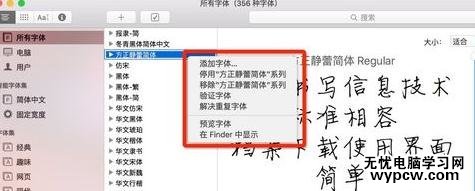 這里可以刪除字體,停止使用字體,預覽字體等選項
