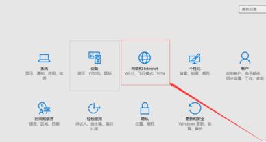 進入設置頁面,在頁面中上方找到圖中紅色方框圈出的“網絡和Internet”,點擊一下