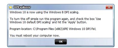 軟件安裝完成之后,頁面會(huì)彈出設(shè)置Windows 系統(tǒng)下的DPI縮放設(shè)置,那么這里的設(shè)置我們僅僅需要應(yīng)用Windows8.1系統(tǒng)的DPI縮放設(shè)置即可,因?yàn)橄到y(tǒng)默認(rèn)是使用Win10系統(tǒng)的DPI縮放設(shè)置。