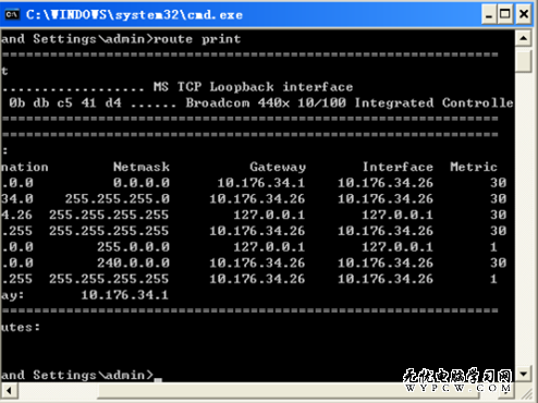 如此說來難道我們就不能找出更好的辦法,讓VPN工作站既能正常訪問單位內(nèi)部網(wǎng)絡(luò),又能順暢訪問Internet網(wǎng)絡(luò)了嗎?在回答這個(gè)問題之前,我們認(rèn)為有必要先來探究一下VPN工作站的路由尋徑情況。既然VPN訪問外網(wǎng)不暢的原因是由路由引起的,現(xiàn)在我們不妨仔細(xì)檢查一下VPN網(wǎng)絡(luò)連接成功前后,VPN工作站的本地路由表發(fā)生了什么變化,之后根據(jù)具體的變化情況來尋找網(wǎng)絡(luò)故障的原因所在。當(dāng)VPN工作站沒有建立VPN網(wǎng)絡(luò)連接時(shí),我們可以在本地系統(tǒng)依次單擊"開始"/"運(yùn)行"命令,在彈出的系統(tǒng)運(yùn)行文本框中輸入字符串命令"cmd",單擊回車鍵后,將系統(tǒng)狀態(tài)切換到DOS命令行狀態(tài);在DOS命令行提示符下輸入字符串命令"route print",單擊回車鍵后,我們將看到如圖2所示的結(jié)果界面。