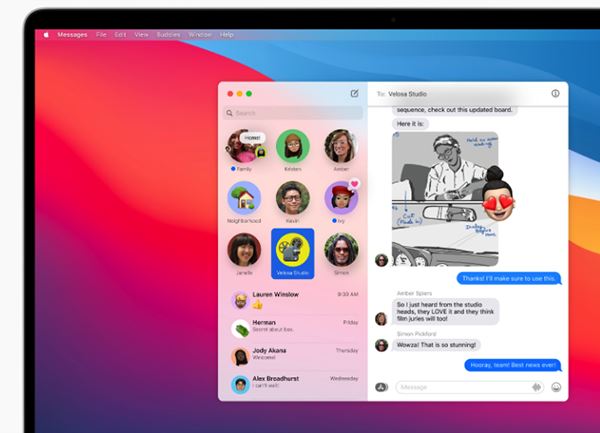 用戶可以使用氣球,五彩紙屑等為消息添加個性。也可以在 Mac 上創建和自定義其 Memoji,并使用 Memoji 貼紙表達自己,以匹配他們的心情和個性。新的群發消息功能簡化了與家人,朋友和同事的互動。用戶現在可以為與群組中所有成員共享的群組對話設置照片或表情符號。