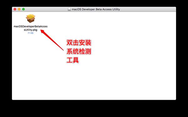 1、下載完整的macOS 11.0公測版升級工具.dmg的文件,打開文件,雙擊.pkg安裝包運行即可檢測到最新的macOS 11.0測試版系統升級信息。