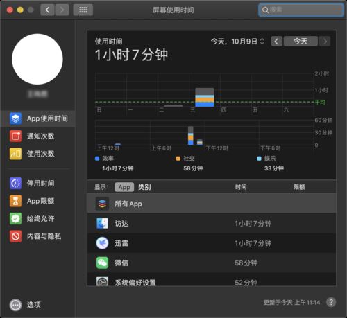 而在軟件層面上,我們也能看到非常多iOS的影子,比如這個屏幕使用時間的統計,就類似于iPhone上的屏幕使用時間統計,可以看到哪些應用運行的時間。這個時間的統計邏輯是無論前臺還是后臺的應用只要開啟都會記錄時間,不同于手機上通常一個界面只顯示一個APP,電腦屏幕上可能同時會顯示多個窗口,屏幕使用時間的統計就會記錄所有打開的應用了。