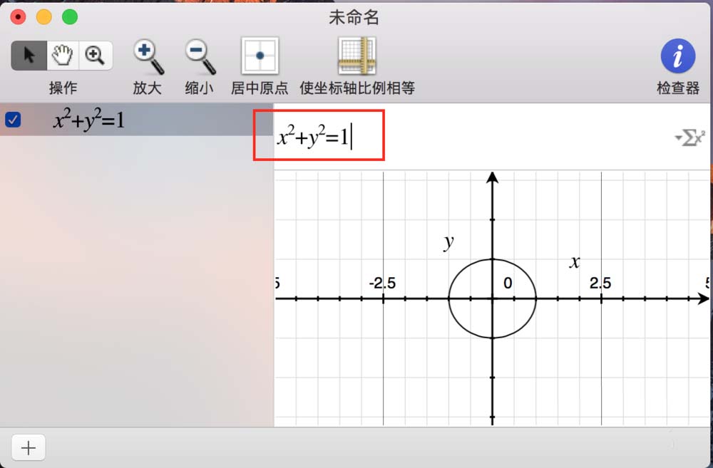 4、在右上角開始寫自己的公式啦,這里用圓的方程測試一下,寫完了方程按回車鍵,圖像就瞬間畫出來啦。
