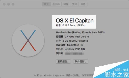 在開始以前,首先請確認當前 Mac 上的系統(tǒng)版本。因為要實現(xiàn)自動隱藏桌面上的菜單欄,需要系統(tǒng)版本為 OS X EL Capitan 版本。如下圖所示,在開始前,請先檢查 Mac 上當前的系統(tǒng)版本。