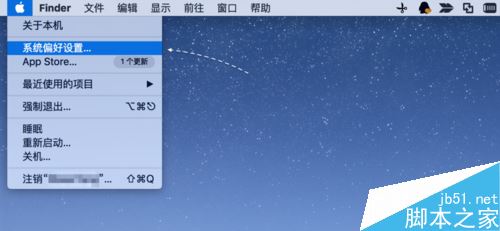 接下來請點擊桌面上方的蘋果菜單欄中的【系統(tǒng)編好設置】選項,如圖所示