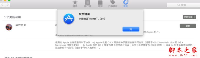 然而在 Mac 的 App Store 中下載并更新,卻總是提示 “未能驗證itunes 311”錯誤。無論嘗試多少次,也或是重新啟動 Mac 電腦,都未能解決此問題。