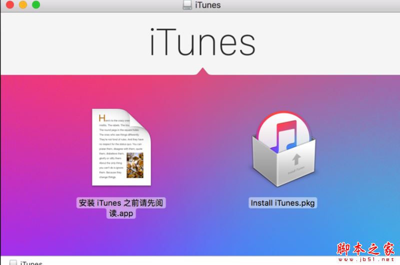 在下載完成以后,打開 iTunes 安裝包,再點擊「安裝 iTunes.pkg」圖標繼續。