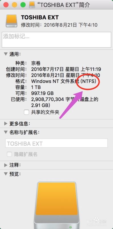 2、查看移動硬盤,是Windows 系統上的 NTFS 分區格式