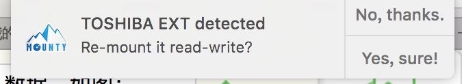 4、使用第三方軟件mounty,讓 Mac 采用 NTFS 分區的硬盤寫入數據,如圖: