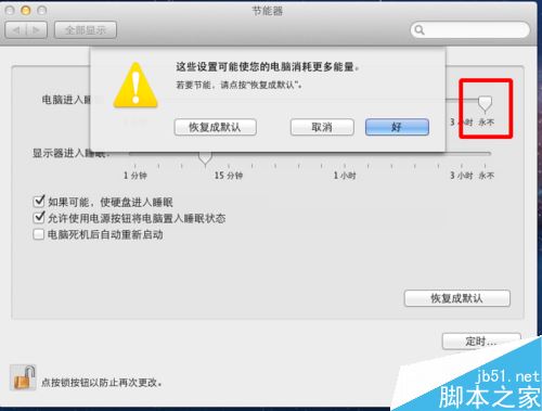提示我們這樣做會消耗更多的能量,我們點擊好即可,以后電腦就不會休眠了,做過這個設置之后。