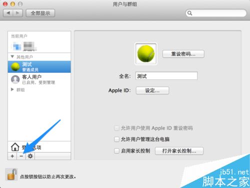 最后等待系統刪除用戶即可,當刪除用戶成功以后,別忘了關閉左下角的小鎖圖標,如圖所示