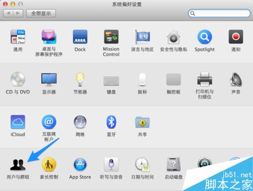 在系統偏好設置中點擊打開“用戶與群組”選項,如圖所示