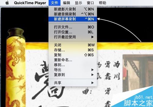 點擊屏幕頂部文件菜單欄中的“新建屏幕錄制”選項,如圖所示