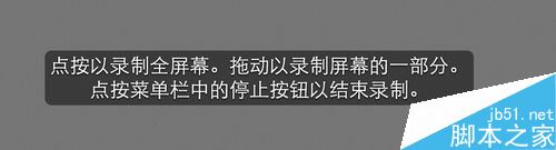隨后屏幕上會出現一段文字提示,直接點按鼠標是對全屏屏幕的肅南。當然我們也可以用鼠標拖動一個區域來錄制。
