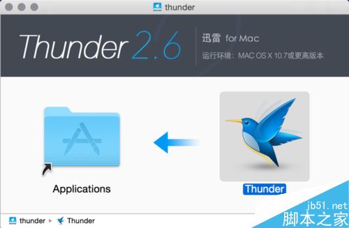 隨后在新彈出的窗口里,直接把迅雷圖標拖動到 Applications(應用程序)目錄中即可。