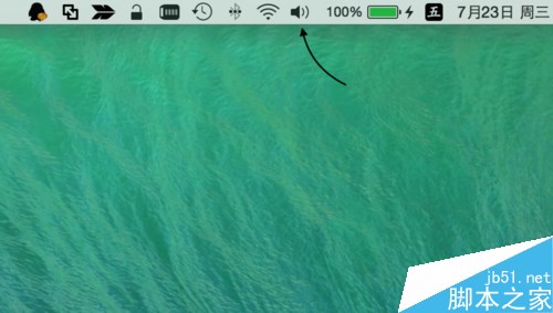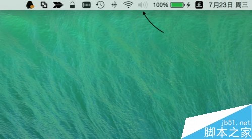 當蘋果 Mac 電腦沒有聲音的時候,這時在屏幕頂部菜單欄中的喇叭會顯示為灰色不要用狀態,如圖所示