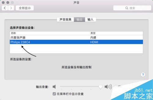 此時我們應該把聲音輸入選擇為 Mac 電腦內置揚聲器,這樣就會有聲音了。