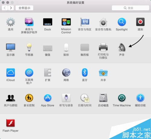 在系統偏好設置中點擊打開“聲音”選項,如圖所示