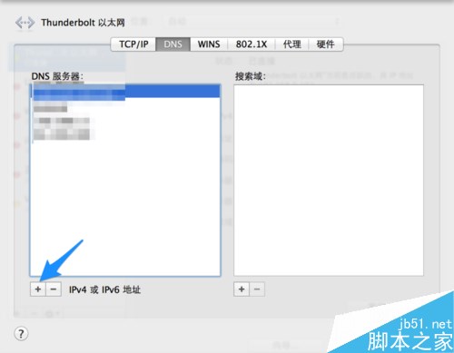 隨后在 DNS 設(shè)置窗口中點(diǎn)擊左下方的“+”按鈕,如圖所示