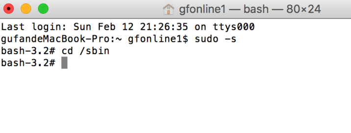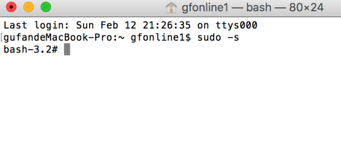 切換至root身份,輸入:sudo -s,回車,若有密碼則輸入密碼,密碼的輸入不會顯示,輸入完成直接回車即可。