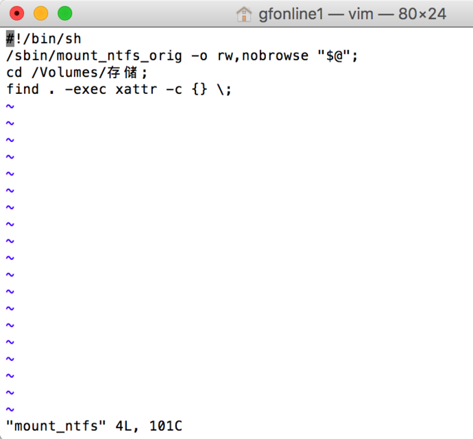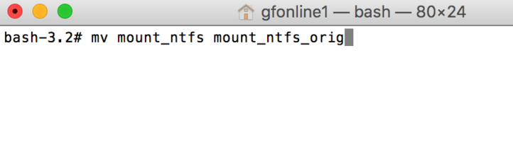將系統自帶的掛載程序改名,輸入:mv mount_ntfs mount_ntfs_orig