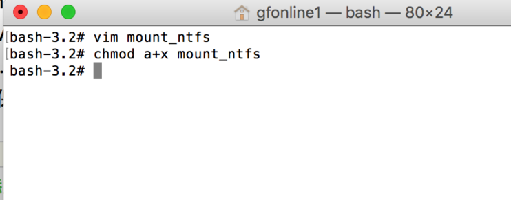 修改掛載文件權限:chmod a+x mount_ntfs,退出root:exit