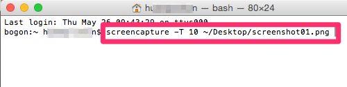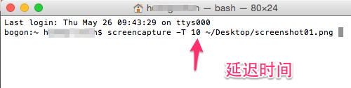 4、輸入命令:screencapture -t jpeg ~/Desktop/screenshot01.png