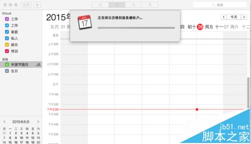 2、在Dock欄打開“日歷”,我們會發現系統已經在自動開始將Mac端的日歷同步到iCloud服務器。