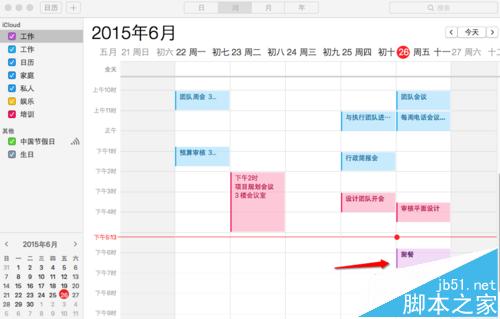 3、接下來我們在Mac日歷上新增一個“聚餐”的新事件。