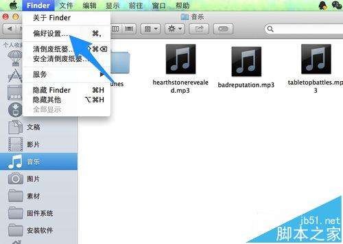 1、可能還有這樣的情況,就是有的朋友不小心把 Finder 中的“下載”欄目也消除了。如果是這種情況的話,打開(kāi) Finder 以后,點(diǎn)擊桌面頂部的 Finder 菜單,然后再點(diǎn)擊“偏好設(shè)置”選項(xiàng),如圖所示