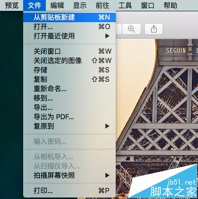 5、選擇 “預覽”菜單“文件”:從剪貼板新建。新建的窗口顯示了剪切的圖片