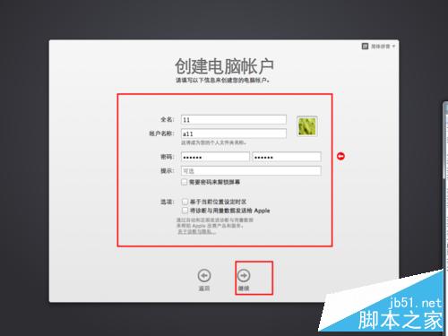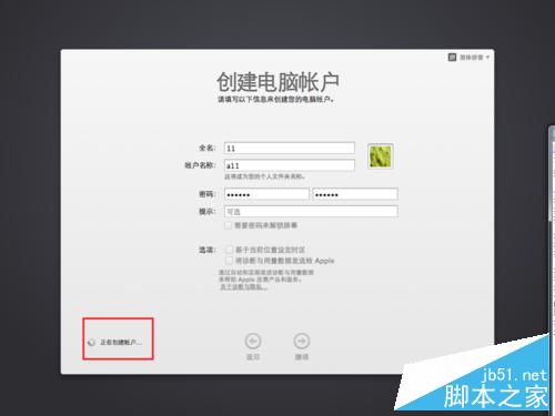 最后點擊繼續按鈕,等待完成創建賬戶