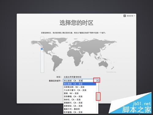 9、在接著按圖中提示進行選擇對應時區,完成后點擊繼續按鈕