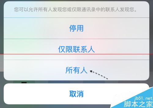 2、接著請在 AirDrop 選項里,建議選擇“所有人”這個選項,如圖所示