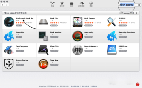 1、直接打開 Mac 上的 App Store 應用,搜索 disk speed 關鍵字,在列表中下載安裝 Blackmagic Disk Speed Test 應用程序。這款軟件可以在很多網上 Mac 電腦評測都要用到的,非常實用。
